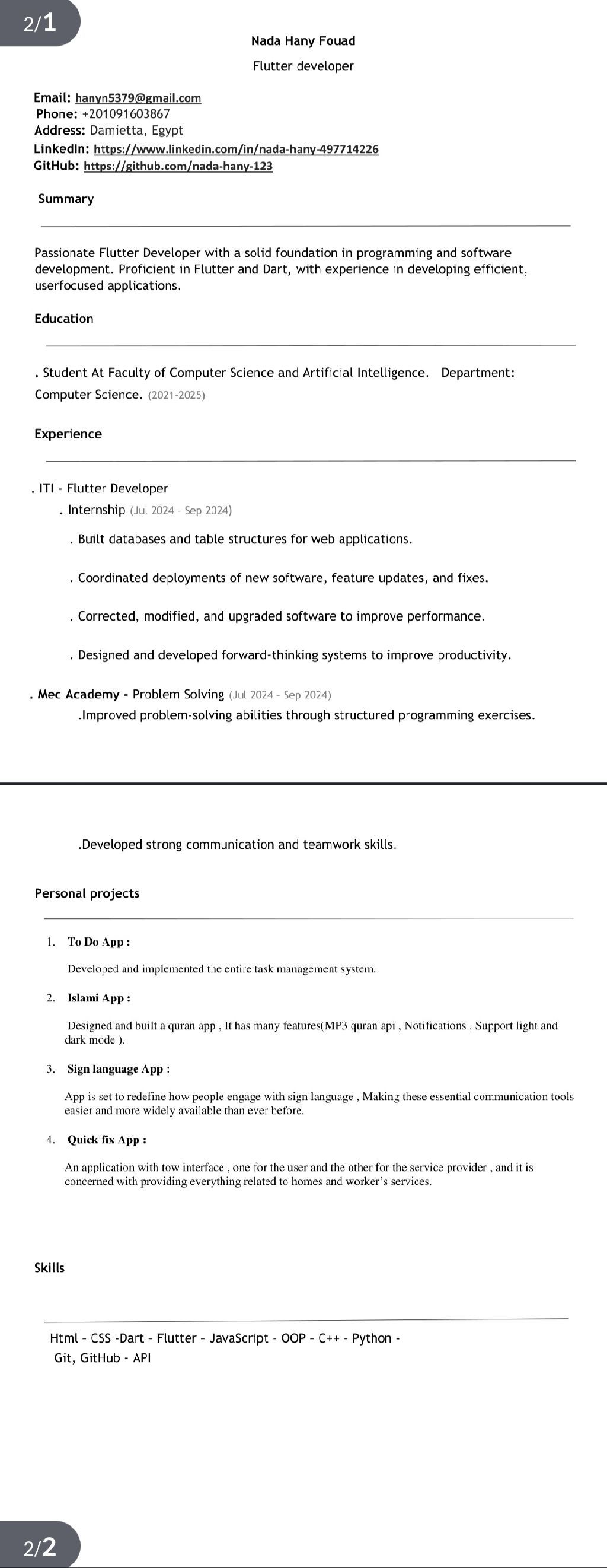 مبرمج Flutter جاهز لتنفيذ المشاريع متخصص في برمجة تطبيقات الموبايل Flutter وتصميم واجهات احترافية، وربط قواعد البيانات وAPI. بنفذ تطبيقات كاملة، صيانة وتعديل مشاريع، وحلول برمجية بلغات Python - Java - C HTML - CSS - JS. شغل احترافي وتسليم سريع. للتواصل متاح بأي وقت