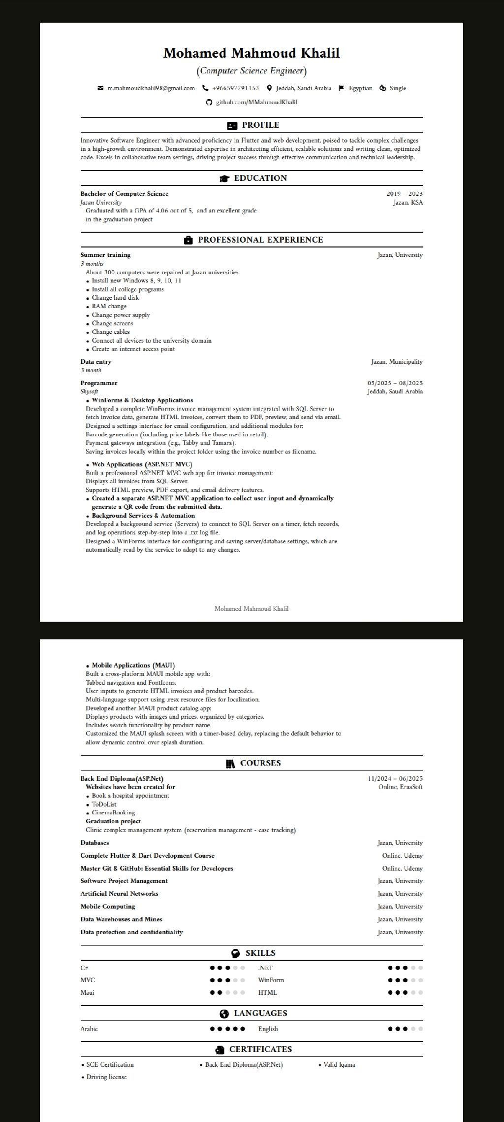 مهندس برمجة محترف يمتلك خبرة في تحليل الأنظمة وتطوير الحلول التقنية والقدرة على العمل على المشاريع بكفاءة عالية اضافة الى مهارات قوية في حل المشكلات