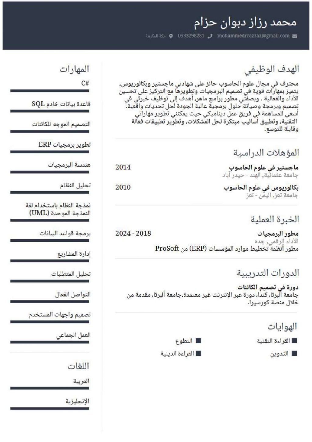 مبرمج محترف ومحلل نظم حاصل على الماجستير من دولة الهند