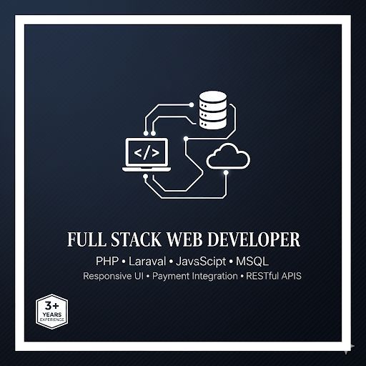 Full Stack Web Developer خبرة أكثر من 3 سنوات في تطوير المواقع والتطبيقات باستخدام PHP, Laravel, JavaScript, MySQL, APIs. متخصص في تصميم واجهات مستخدم متجاوبة (Responsive UI) تكامل أنظمة الدفع الالكتروني (Apple Pay, مدى، بطاقات الائتمان) تطوير وربط الأنظمة بواجهات برمجية (RESTful APIs) بناء متاجر الكترونية ومنصات للجمعيات والشركات. تقديم دعم فني وصيانة مستمرة