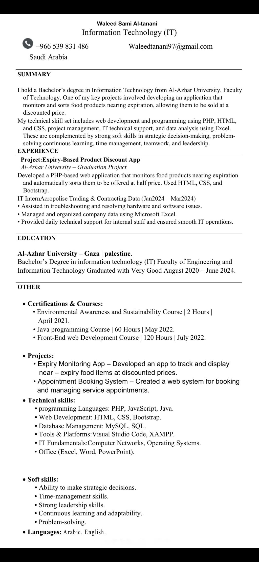 مهندس تقنية معلومات it, أتقن HTML, PHP, MySQL, Bootstrap, CSS تطوير وتصميم مواقع الويب وقواعد البيانات وأتمتع بمهارات في برمجة JavaScript الى جانب اتقان برامج مايكروسوفت أوفيس واستخدام الحاسوب بكفاءة أسعى دايما بتطوير مهاراتي ومواكبة التطوارت في البرمجة