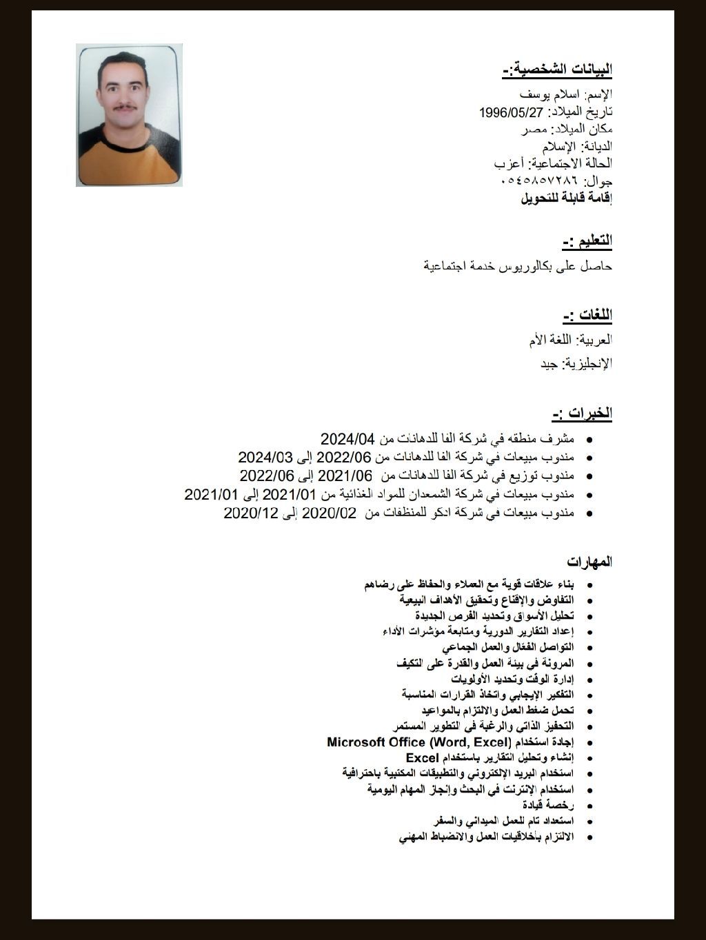 ابحث عن وظيفة لدي شركة مرموقه وتبحث عن الاستقرار ولدي خبرة في مجالات مختلفه في المبيعات والتسويق والتحصيل والتوزيع والاشراف والعلاقات العامة ويمكنني العمل في الموارد البشرية