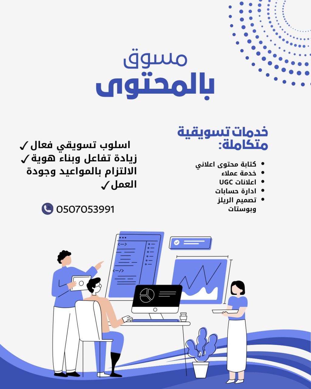 أقدم خدمات تسويقية متكاملة تشمل كتابة المحتوى، صناعة المحتوى وUGC، إدارة حسابات السوشيال ميديا، وتصميم الريلز والبوستات، أركز على تقديم أفكار ابداعية تناسب علامتك التجارية، مع توفر جميع الخدمات اونلاين باستثناء التصوير في موقع العمل