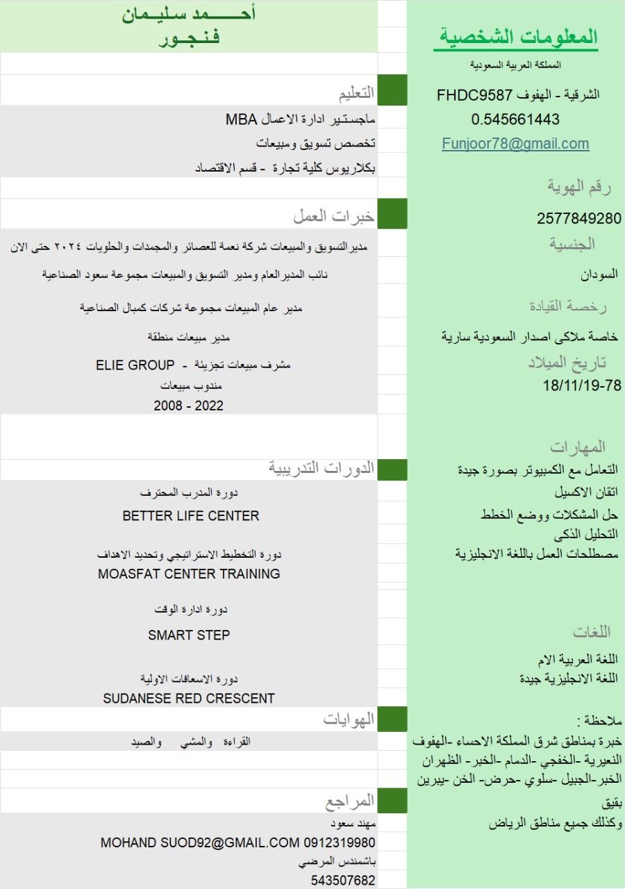خبر علمية وعملية تزيد عن 13 عام في مجال الادارة العامة والتسويق والمبيعات داخل المملكة وخارجها