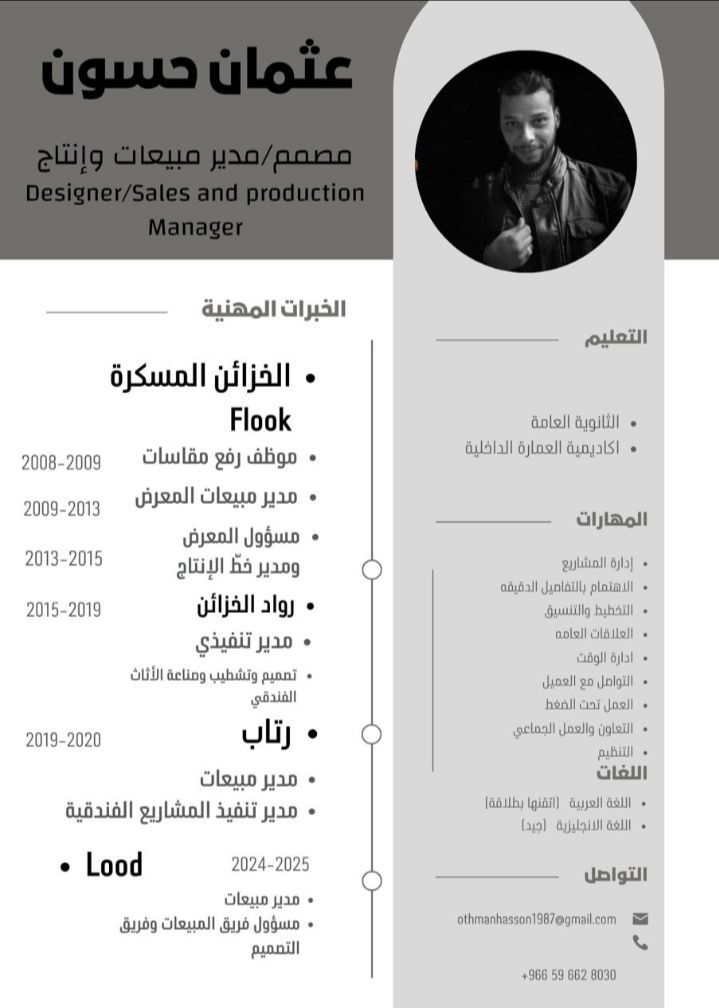 مدير مبيعات وبائع محترف ومدير تشغيل وانتاج في مجال الخزائن والأثاث المنزلي والمفروشات والديكور خبرة أكثر من 15 عام سوري الجنسية. ابحث عن فرصة عمل
