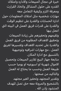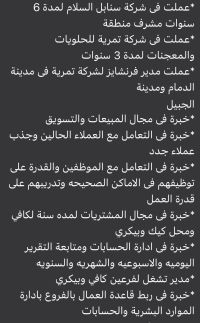 يطلب عمل / وسبق ليا العمل في مجالات الاشراف على محلات الحلويات في مدن (الرياض / الدمام / القصيم / الجبيل)
