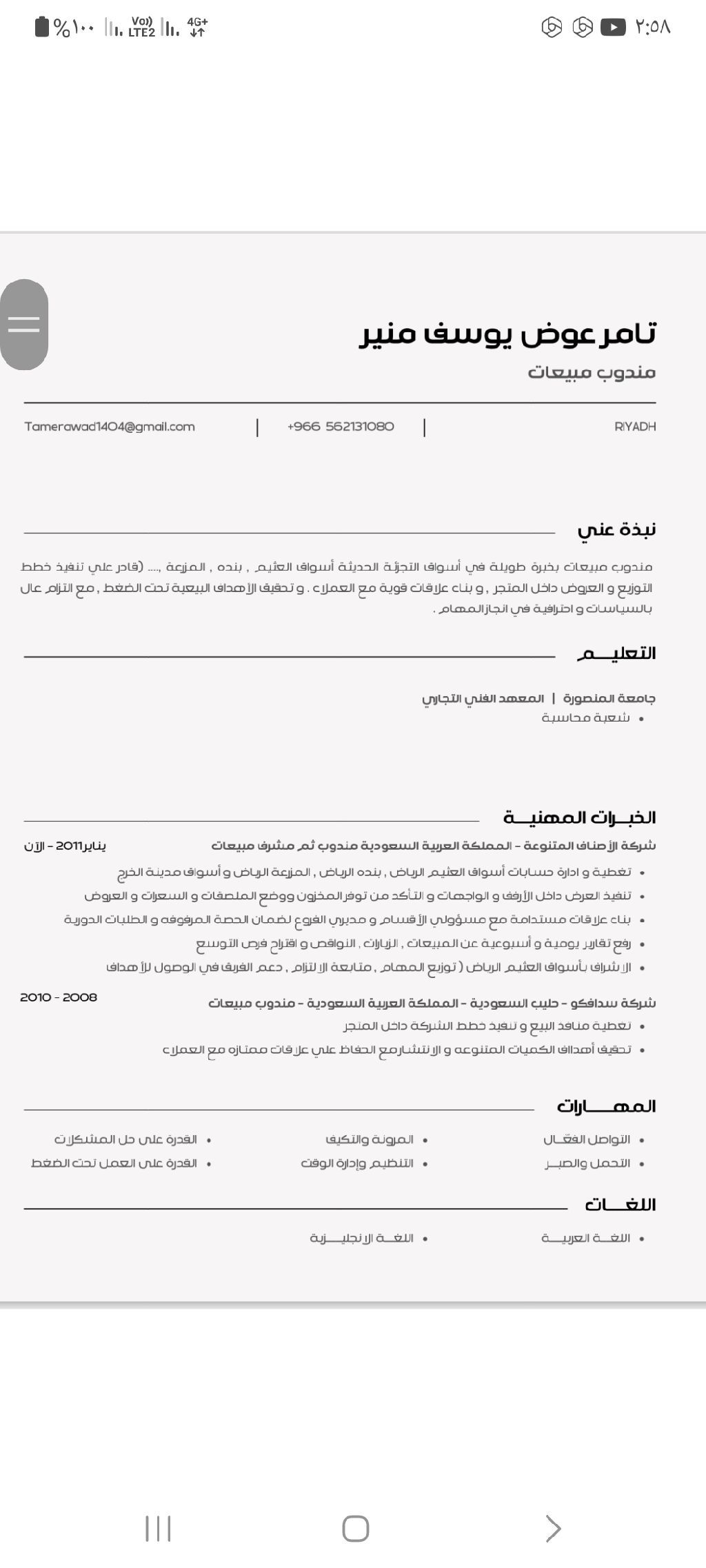 مندوب مبيعات عملت في الأصناف المتنوعه لمدة 10 سنوات ابحث عن وظيفة شاغره