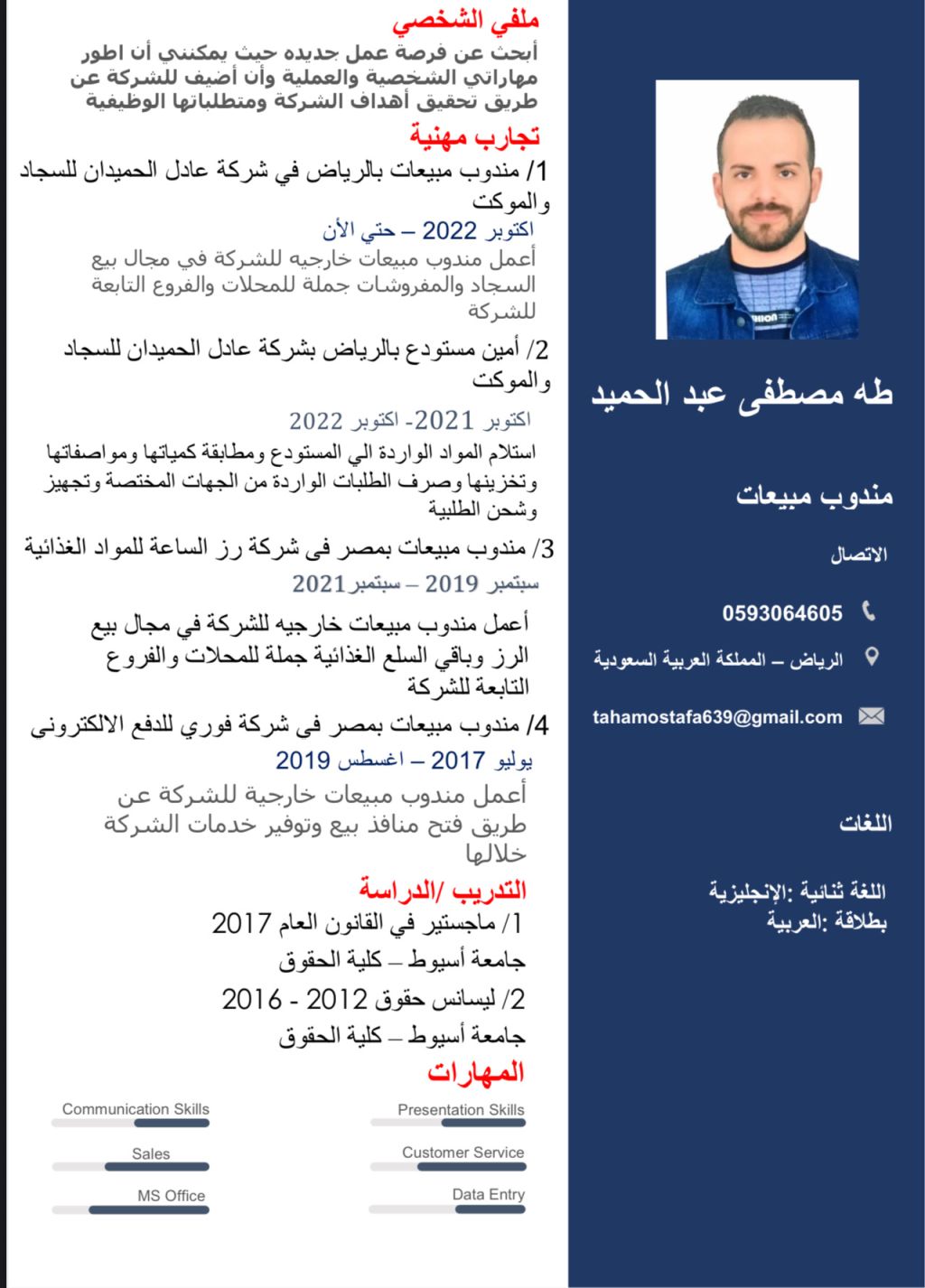 مندوب مبيعات جملة خبرة 4 سنوات موجود في الرياض موجود رخصة وإقامة سارية