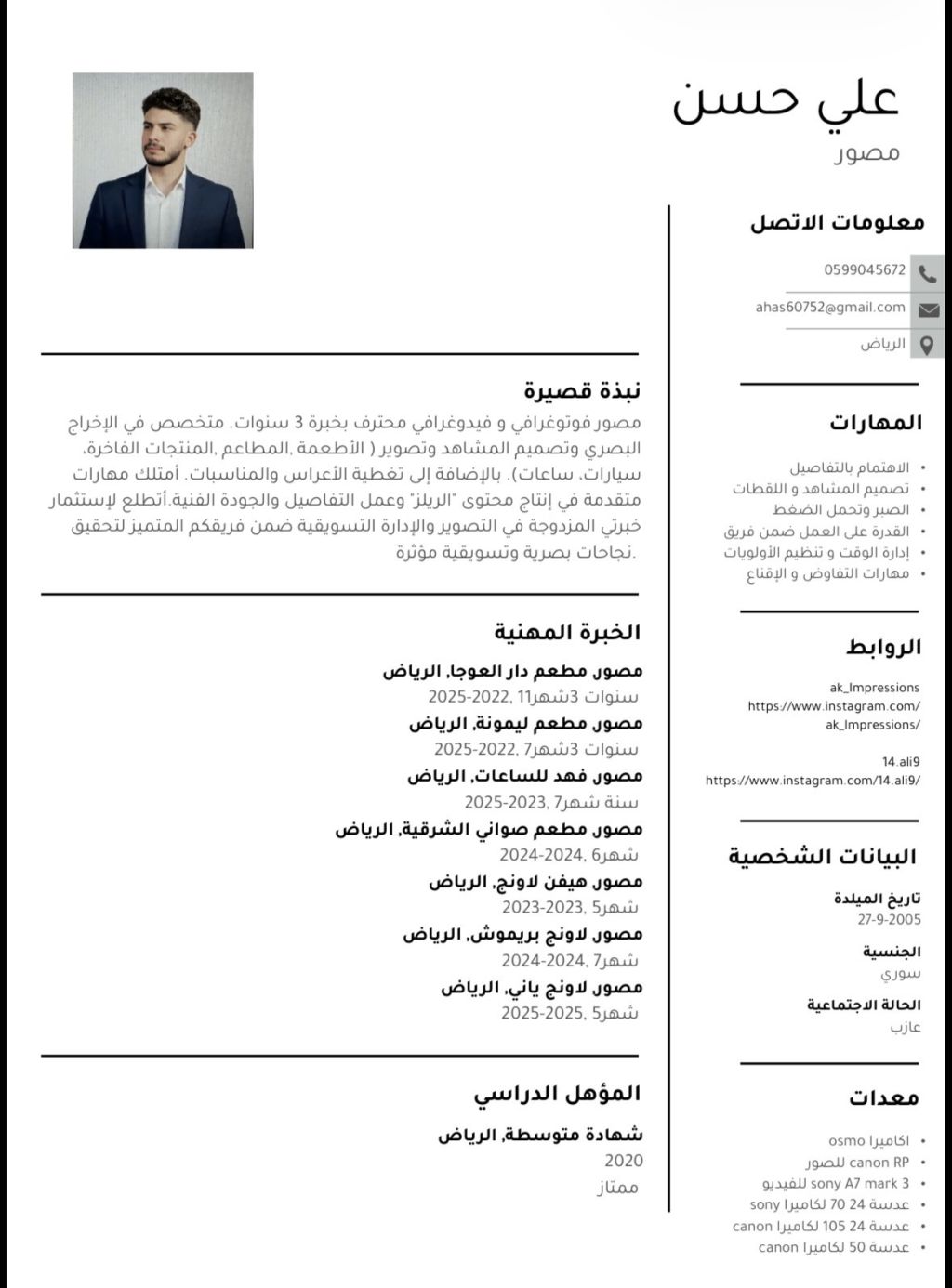 علي حسن مصور للمنتجات والأشخاص والمطاعم والسيارات صور وفيديو