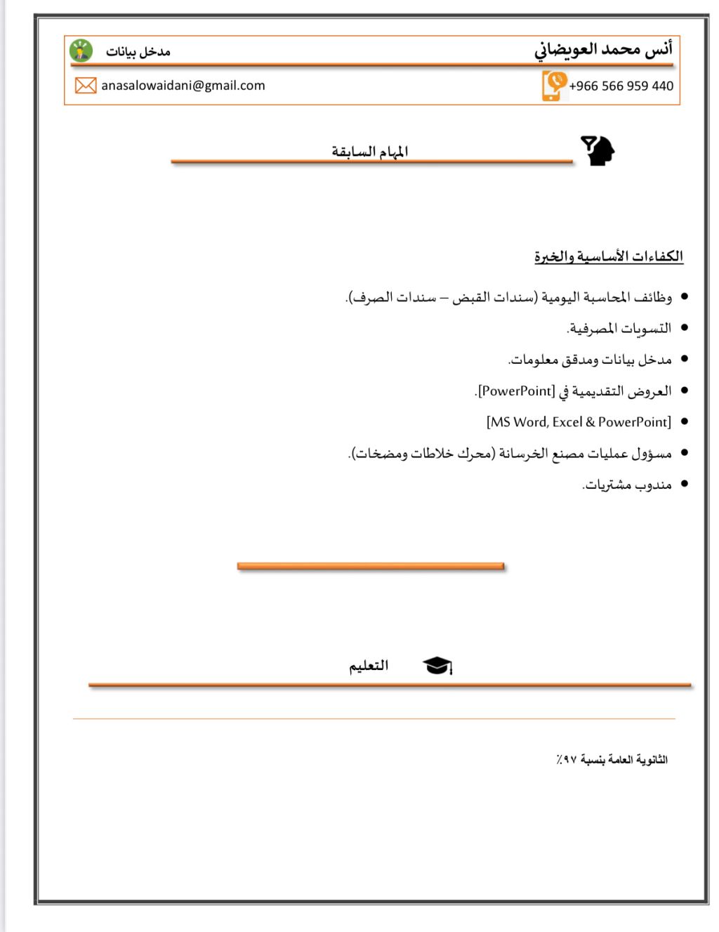 شاب يمني مواليد المملكة القصيم اشتغلت في عدة مجالات منها محلات ملابس نسائية ورجالية محلات جوالات محلات التمور مندوب مشتريات مندوب مبيعات مدخل معلومات (pc) مدقق بيانات (pc) محرك ومسؤول سيارات مكتب تشغيل خرسانة مع المحاسب (تسويات بنكية أمين صندوق سندات القبض سندات الصرف تقفليات شهرية وسنوية) ابحث عن عمل في القصيم