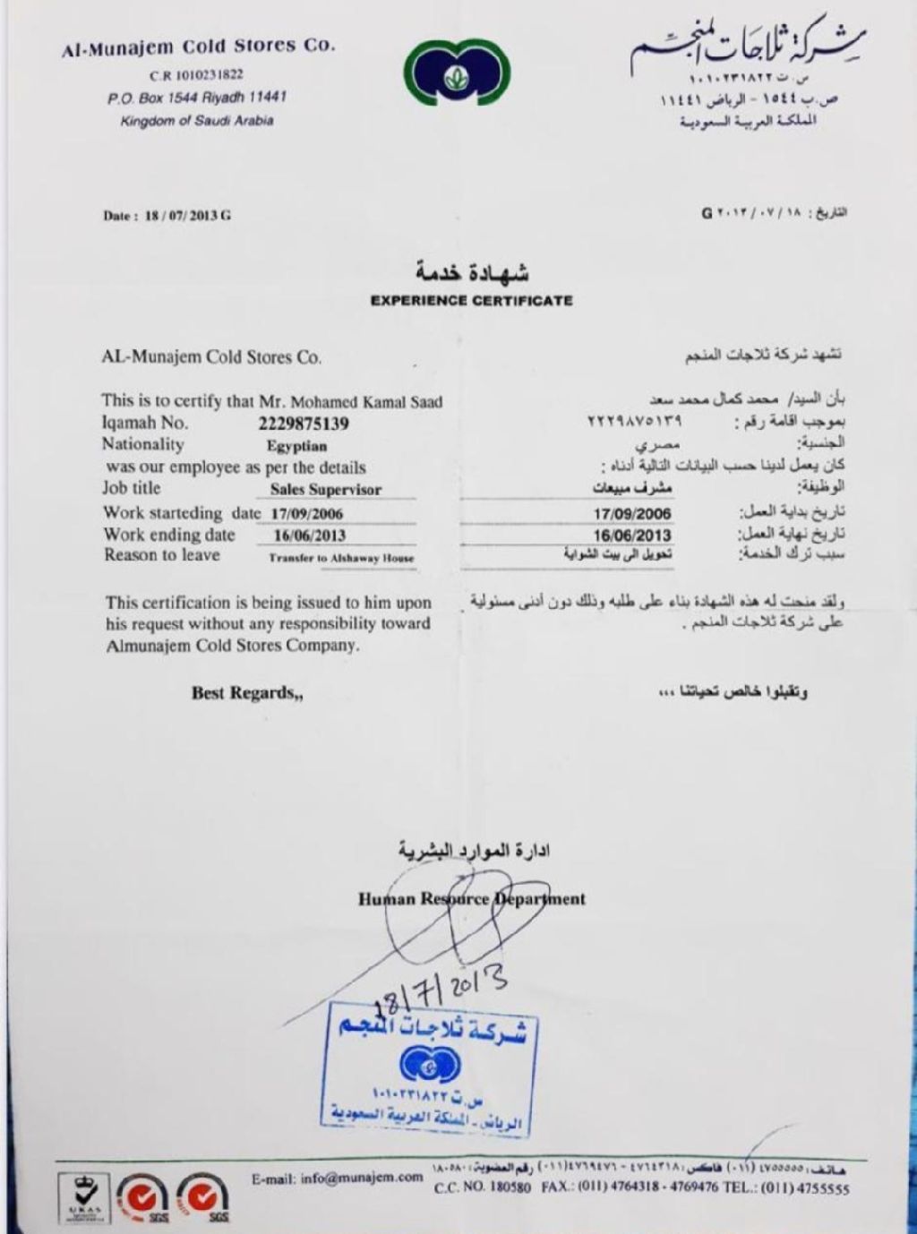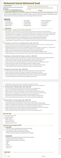 مدير مبيعات بالمملكة العربية السعودية ومعظم مناطق المملكة خبرة 15 عام بدءا من 2006 مشرف ومدير الفرع بشركة المنجم قرابة 8 سنوات ثم مدير مبيعات في شركة كواليتي ايس كريم يزيد عن 8 سنوات ولدي اقامة سارية ورخصة سارية ومتاح نقل كفالة وأتشرف بالتواجد بينكم ملحوظة أنا موجود في مصر القاهرة حاليا وجاهز للسفر أي وقت