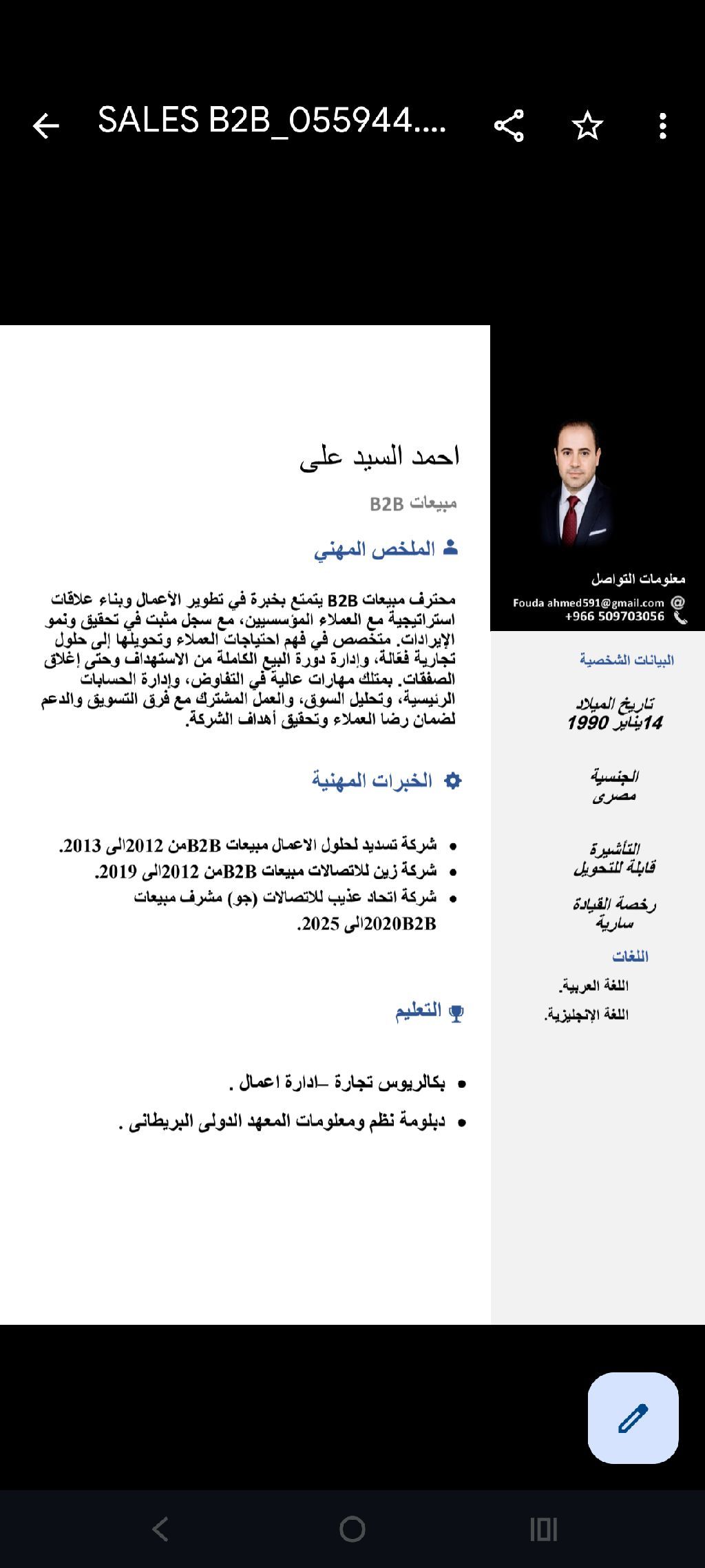 أنا محترف مبيعات امتلك خبرة في تحقيق الأهداف البيعية، بناء علاقات قوية مع العملاء، واغلاق الصفقات بفعالية. ابحث حاليا عن فرصة للانضمام الى فريق عمل طموح أستطيع من خلاله اضافة قيمة حقيقية والمساهمة في نمو المبيعات. أبرز مهاراتي التفاوض واقناع العملاء إدارة علاقات العملاء (CRM) تحقيق وتجاوز التارجت المتابعة وبناء ولاء العملاء متاح للعمل بدوام كامل