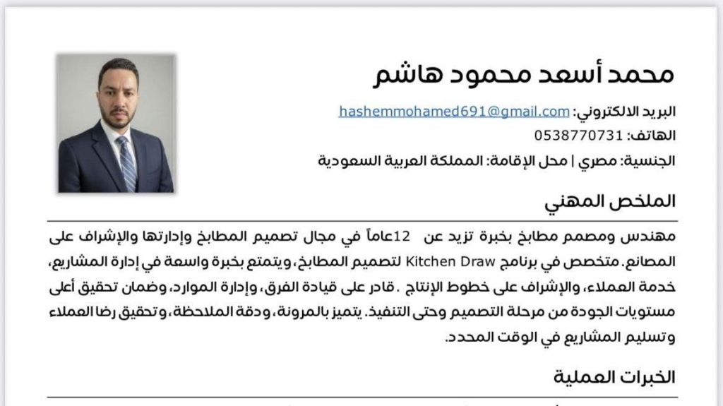 بائع ومصمم مطابخ خبرة أكثر من 13 سنة - إقامة قابلة لنقل الكفالة