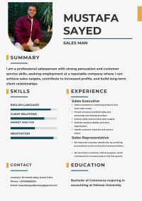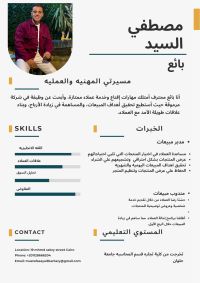 لدي خبرة في برامج المايكروسوفت الأكسيل ورد وأودووا وادخال البيانات واقناع العملاء بالشراء والتفاوض