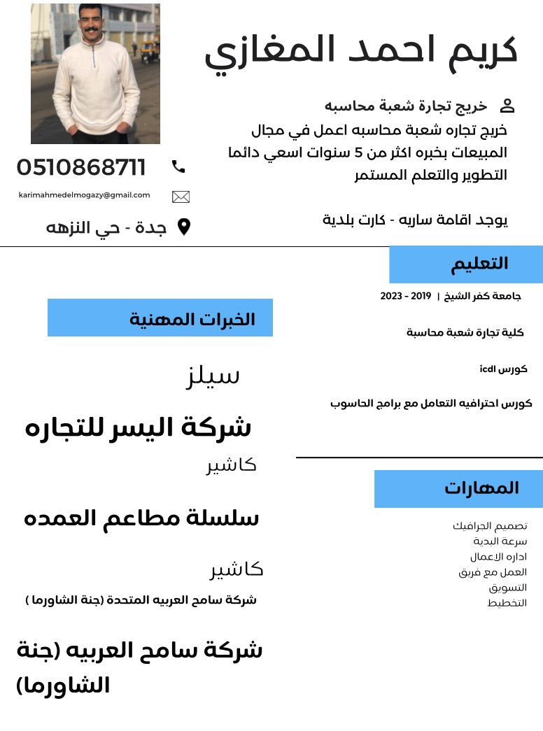 اعمل في المبيعات وعندي خبرة 5 سنوات يوجد إقامة سارية - كارت بلدية