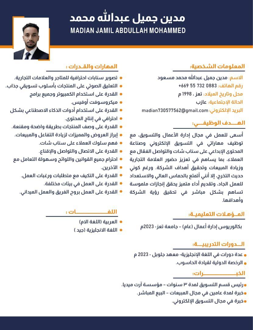 شاب يمني الجنسية بكالوريوس ادارة أعمال بخبرات متعددة ابحث عن فرصة عمل مناسبة لمجالي التفاصيل بالخاص السيفي والخبرات موضحه بالصورة لمعرفة المزيد التواصل خاص