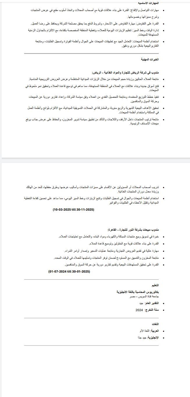 ابحث عن عمل مندوب مبيعات خبرة في مجال المبيعات والعمل الميداني ومتابعة التحصيل من العملاء إقامة سارية ورخصة قيادة