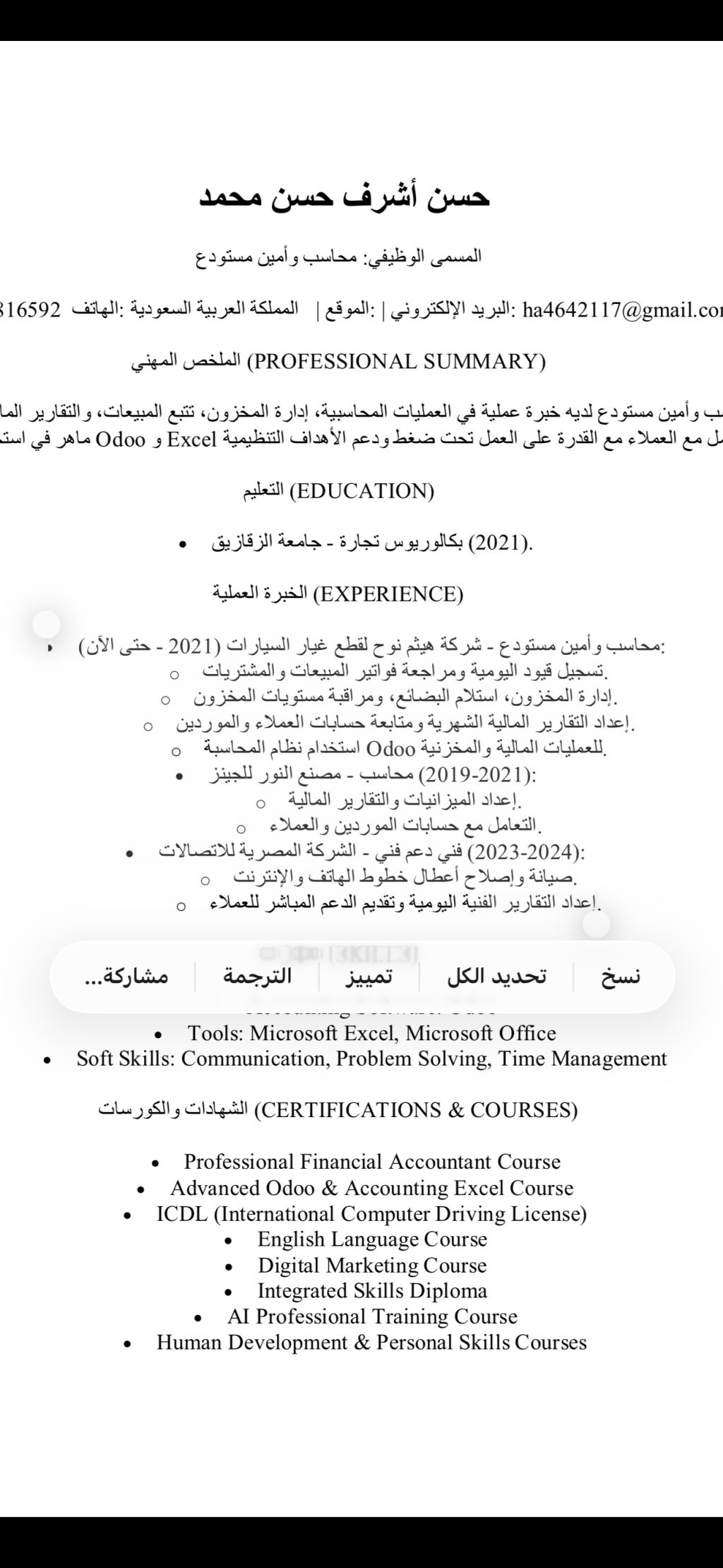 الاسم حسن أشرف المهنة محاسب ابحث عن عمل داخل نطاق المملكة