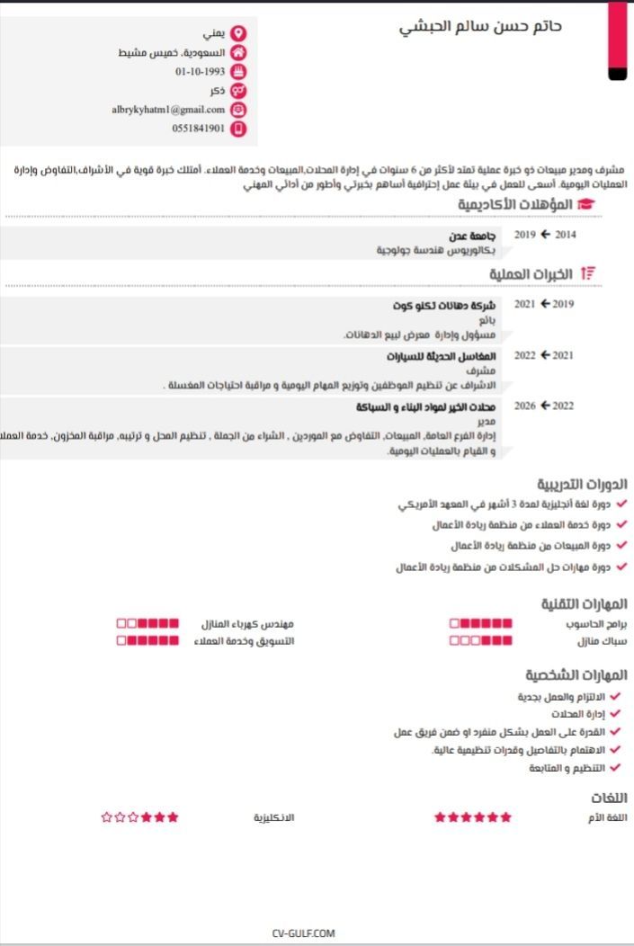 لدي خبرة عمل كبيرة في مجال المبيعات والاشراف وحاصل على شهادة البكالوريوس، ابحث عن فرصة عمل في مجال المبيعات
