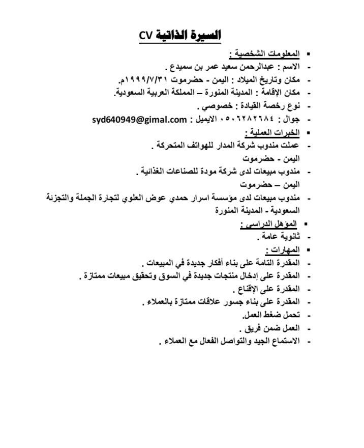 ابحث عن عمل مندوب مبيعات مواد غذائية في المدينة المنورة لدي قاعدة عملاء في منطقة العزيزية