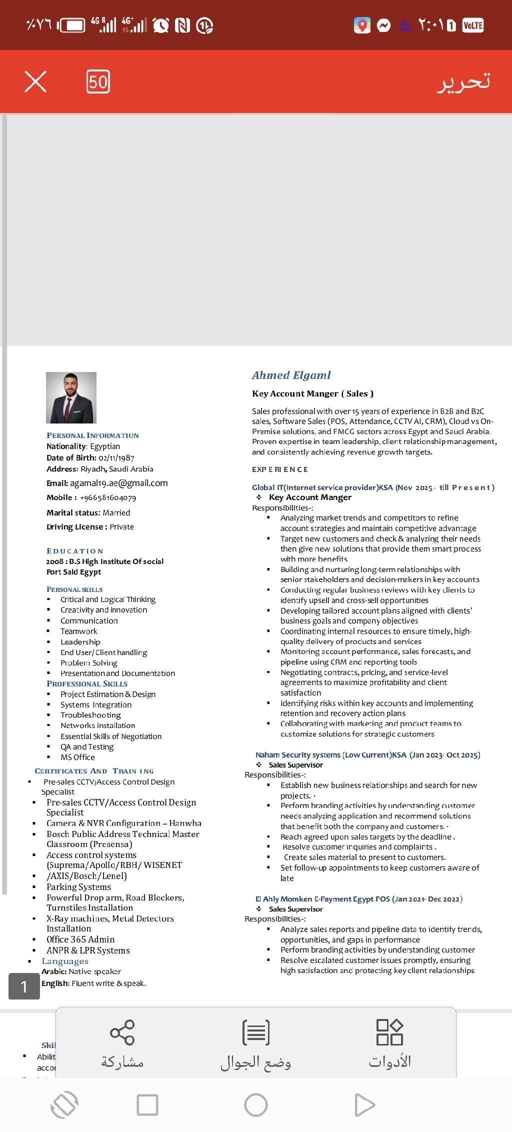 ابحث عن فرصة عمل مشرف مبيعات مجالات (الاتصالات خدمات الانترنت + التيار الخفيف والأنظمة الأمنية + المدفوعات والتحصيل + اجهزة الهاتف الذكية)