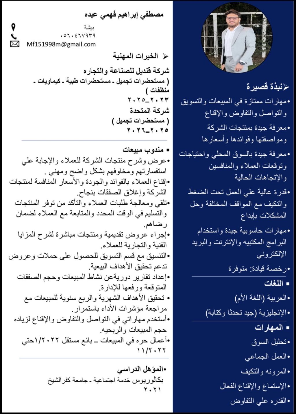 مندوب مبيعات خبرة 3 سنوات في منتجات مستحضرات تجميل، ورقيات، منظفات متوفر رخصة قيادة