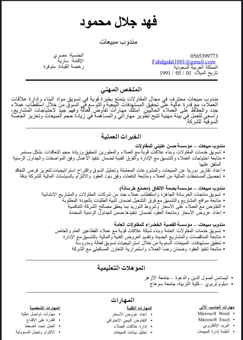 خبرة أكثر من 10 سنوات بجلب المشاريع والمقاولات في مجال البناء والهدم والتشطيبات وأعمال الألومينيوم والكهرباء والسباكة وأعمال الرخام والجبس بودر والأمن والسلامة وأعمال الصرف الصحي والمياه