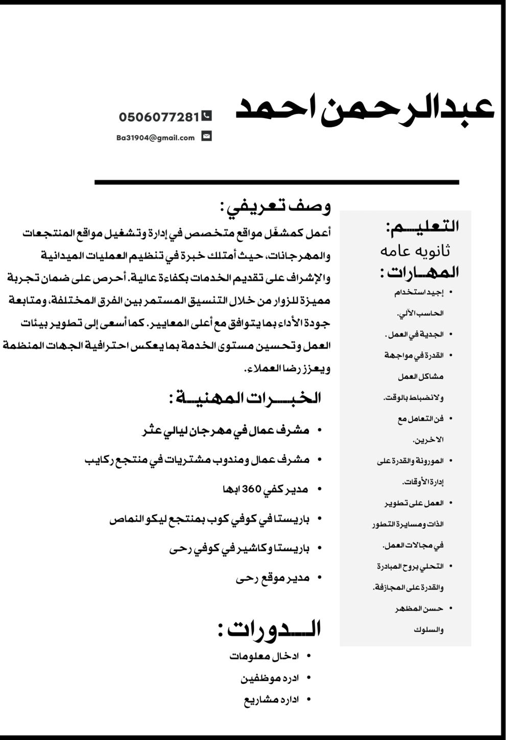 شاب يمني ابحث عن عمل ادارة اشراف على عمال