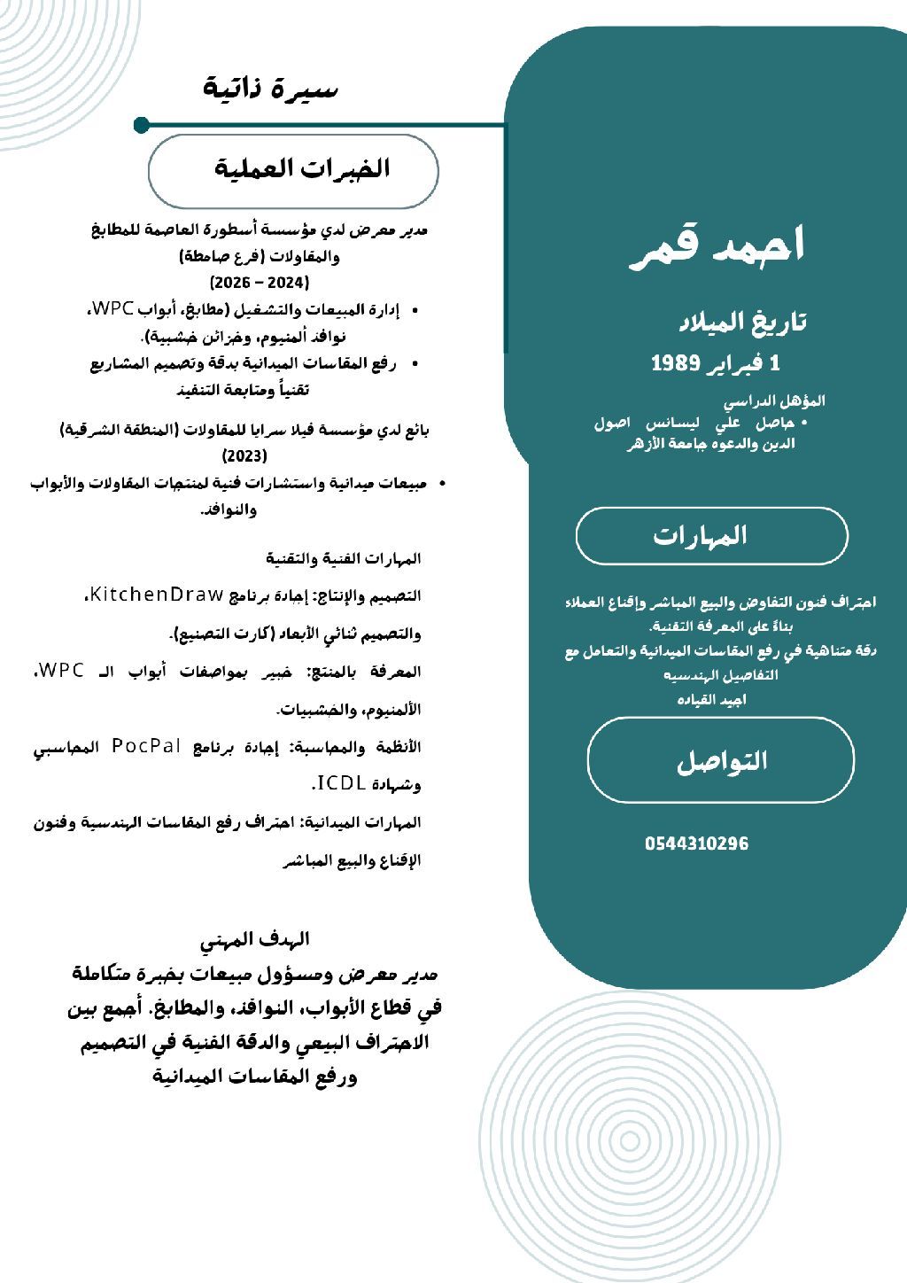ابحث عن عمل بائع ومصمم مطابخ ألومينيوم وخزائن خشبيه لدي معرض مطابخ خبرة أكثر من عشر سنوات في مجال المطابخ الألومينيوم والخزائن الخشبيه وأبواب ونوافذ الألومينيوم وأبواب أل wpc متاح للعمل ونقل الكفالة متواجد بالمدينة