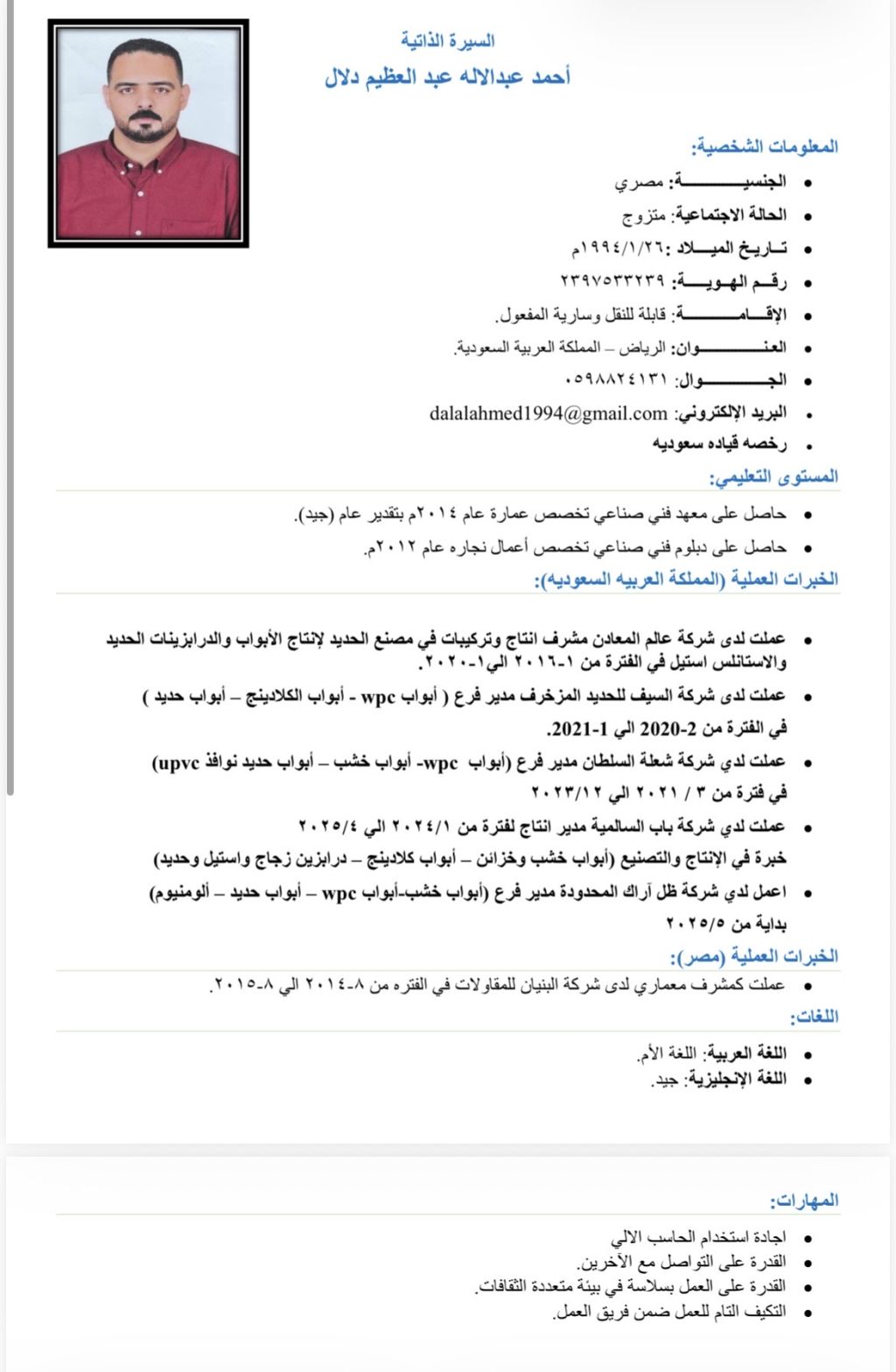 أحمد حافظ علي دراية وخبرة 10 سنوات بأعمال الحديد المزخرف والألومينيوم والأخشاب وWPC (انتاج ومبيعات)