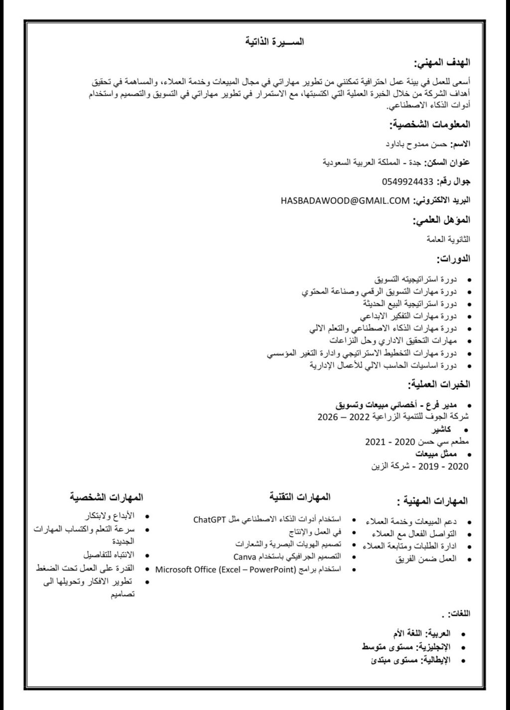 يطلب عمل مبيعات وتسويق في السعودية