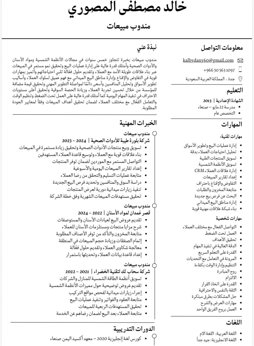 امتلك مهارات قوية في التواصل، الاقناع، والعمل ضمن فريق، اضافة الى القدرة على تحمل ضغط العمل وتحقيق النتائج وأسعى دائما للتطوير المستمر واكتساب خبرات جديدة أتميز بالالتزام، الجدية، سرعة التعلم، والانضباط في أداء المهام، وأطمح لأن أكون اضافة فعالة لأي جهة اعمل معه
