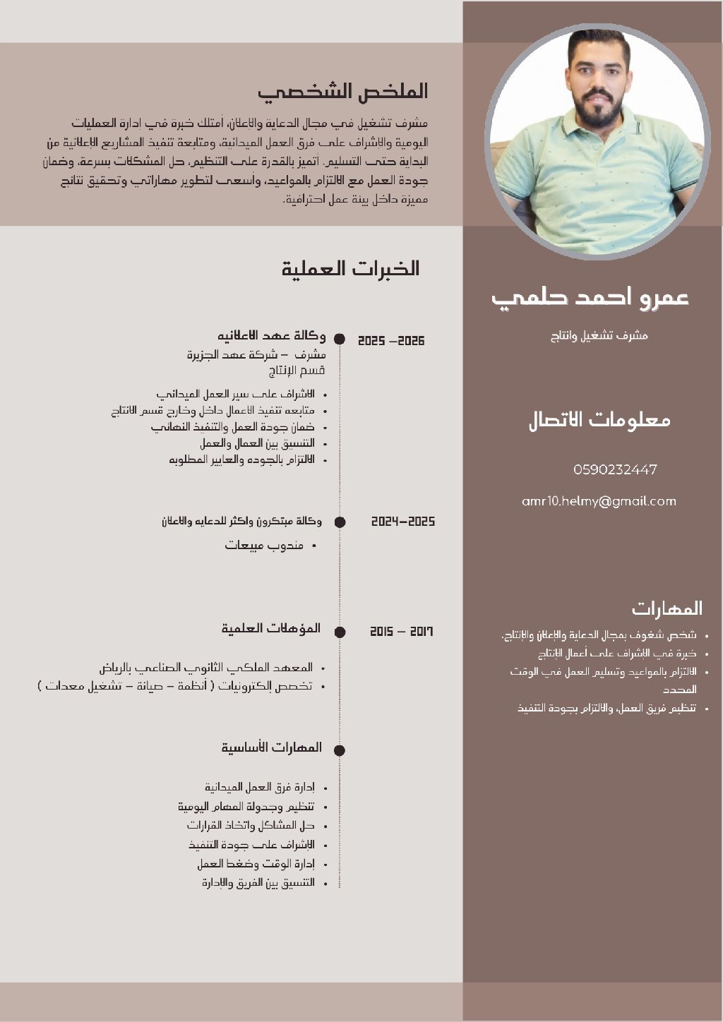 مندوب مبيعات ومشرف تشغيل في مجال الدعاية والاعلان وخبرة في المجال أكثر من 5 سنوات