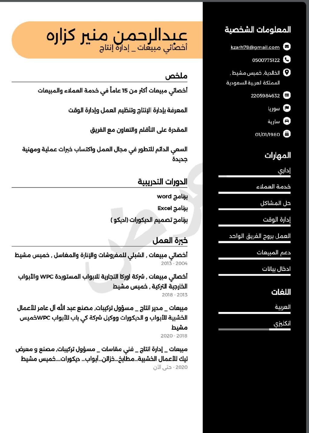 أخصائي مبيعات للمعارض ابحث عن فرصة عمل لدى الشركات والمؤسسات لدي خبرة في مجال المبيعات للمفروشات والمطابخ والخزائن والديكورات الخشبية والأبواب خبرة أكثر من 15 عاما في التعامل مع العملاء ومهارة الاقناع واللباقة بالكلام. وأنا لا اعمل مسوق بالعمولة. ومتاح نقل كفالة مع إقامة سارية