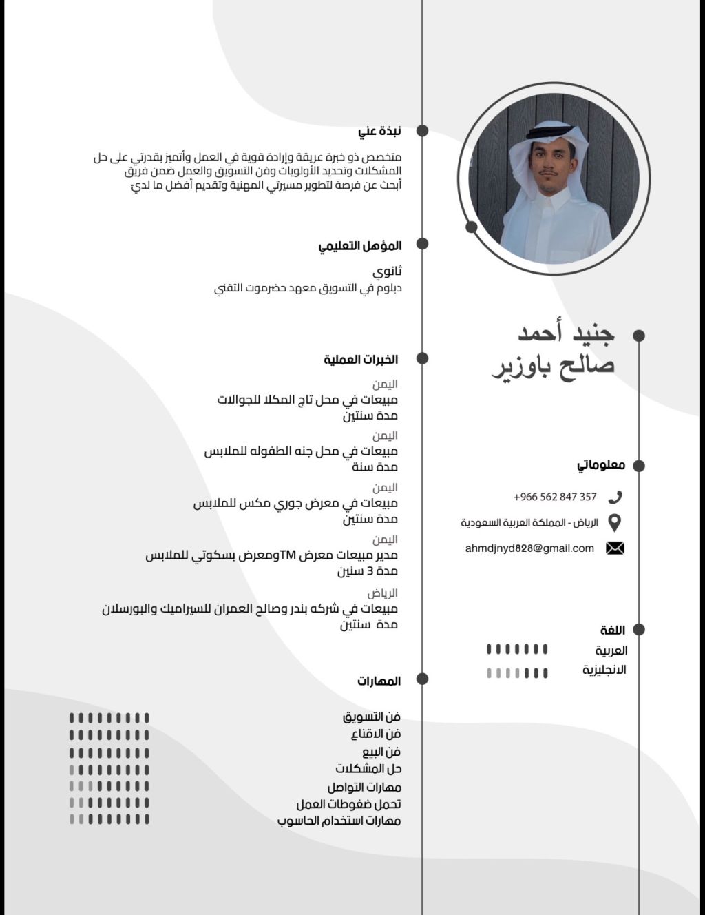 متخصص ذو خبرة عريقة وإرادة قوية في العمل وأتميز بقدرتي على حل المشكلات وتحديد الأولويات وفن التسويق والعمل ضمن فريق ابحث عن فرصة لتطوير مسيرتي الموانية وتقديم أفضل ما لدي
