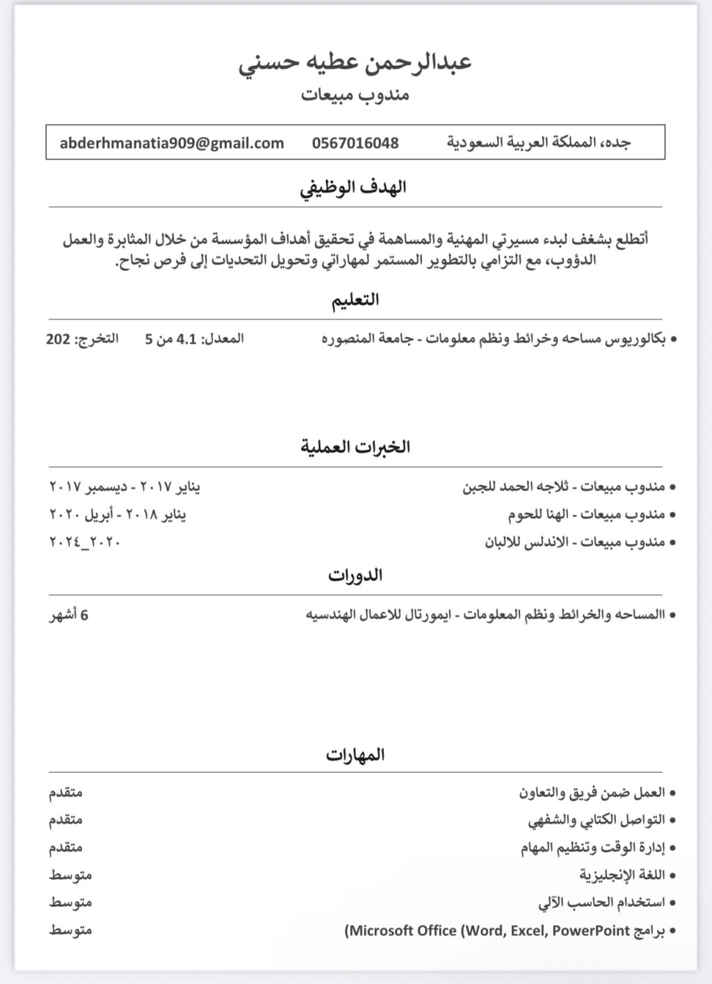 ابحث عن عمل في مجال التسويق والتوزيع خبرة 9 سنوات في مجال المواد الغذائية خاريج بكالوريوس مساحة وخرائط ونظم معلم ومات مقيم في جدة للتواصل