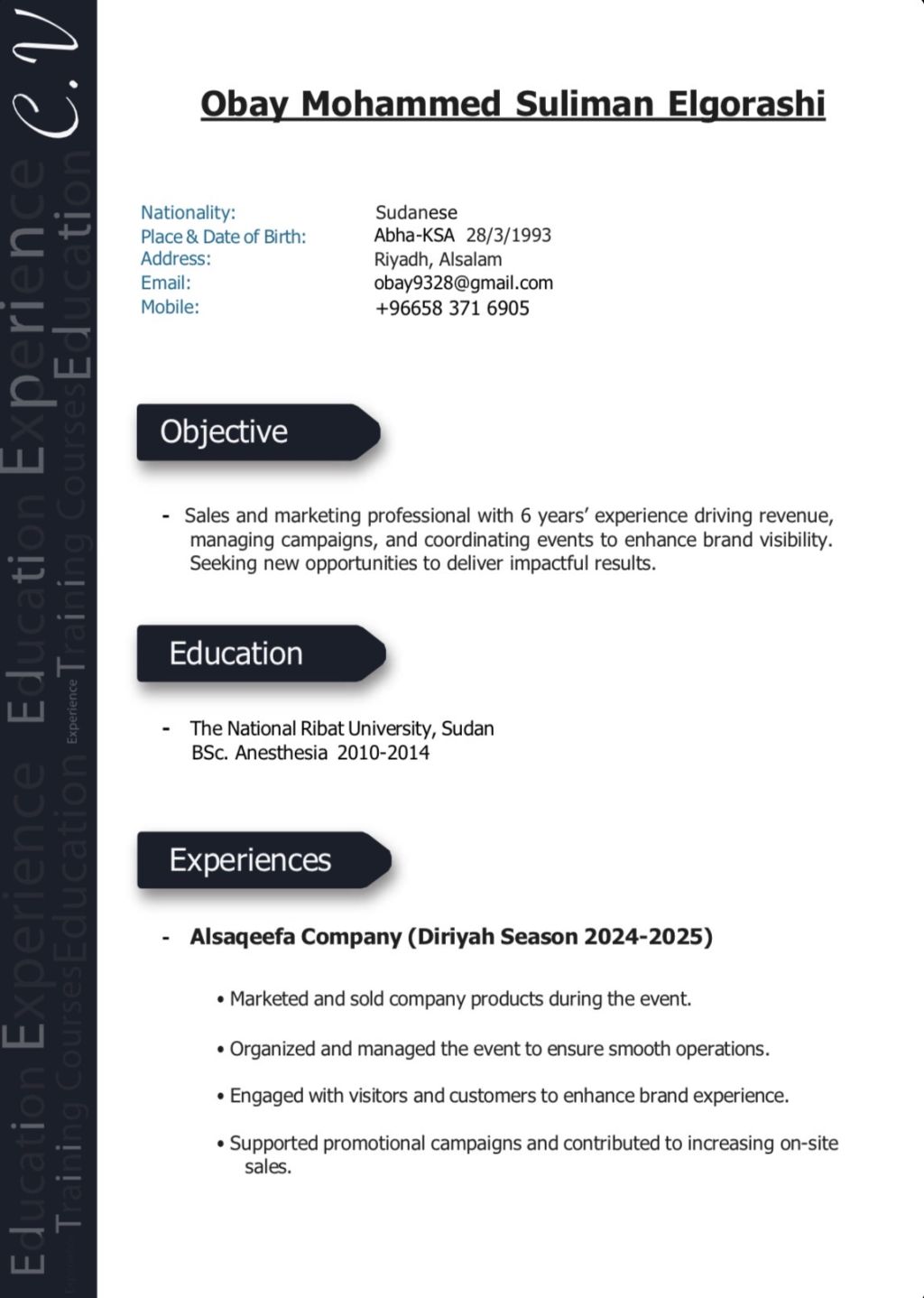 Seeking Work in Sales and Marketing in Saudi Arabia