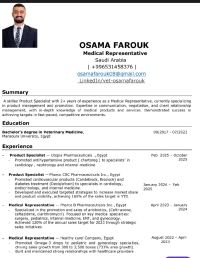 Open to work as a medical representative with 3 years of experience as product specialist at pharmaceutical companies