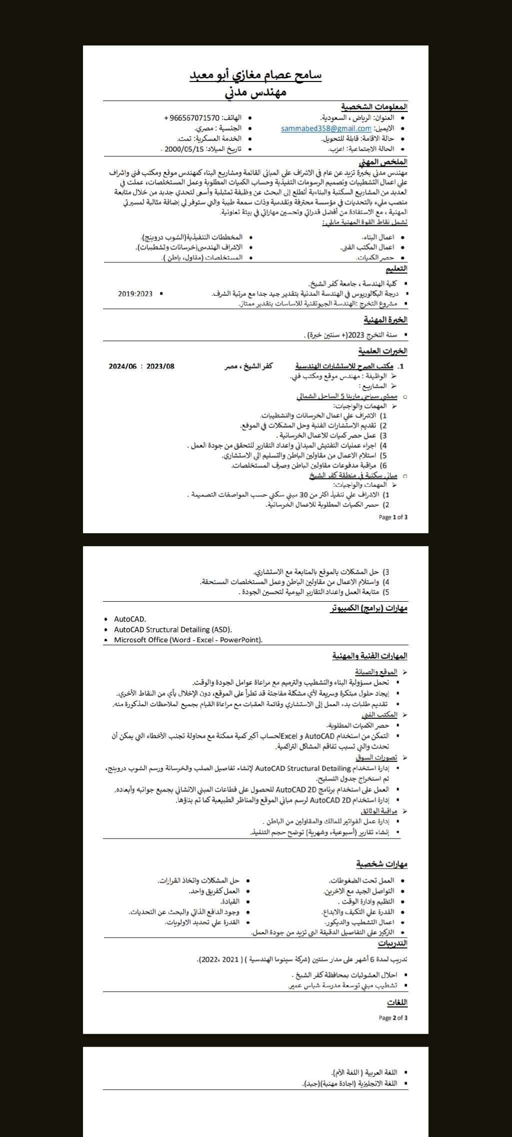 مهندس مدني اشراف وتنفيذ مقيم حاليا في الرياض، ابحث عن فرصة عمل في شركات التطوير العقاري. امتلك خبرة عملية في تسويق الوحدات العقارية، التعامل مع العملاء، عرض المشاريع، متابعة العملاء، والمشاركة في اتمام معاملات بيع فعلية داخل السوق السعودي الى جانب ذلك، لدي خلفية هندسية قوية من خلال العمل في مواقع تنفيذ، مما يمنحني فهما فنيا يساعدني على شرح المنتج العقاري بشكل احترافي ودقيق، والتواصل بثقة مع العملاء