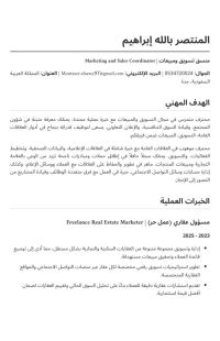 مصري الجنسية مقيم في جدة ابحث عن فرصة عمل شاغره في مجال التسويق أو مندوب مبيعات، امتلك مهارات عالية في التواصل مع العملاء والاقناع حسن المظهر، لبق واسعي للانضمام الى فريق عمل يقدر الجديه والطموح، القدرة علي جذب العملاء وانشاء علاقة عمل طويله الامد القدرة علي العمل تحت ضعط وتحقيق الأهداف في أي ظرف