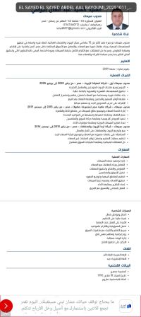الاسم السيد عبد العال الجنسية مصري المهنة مندوب مبيعات الخبرات داخل المملكة العمل في تسويق المكاتب وغرف المعيشة. اجادة سواقة السيارات. العمل في مجال الأدوات الصحية لمدة شهر ونصف أجيد التعامل مع العملاء الحاليين والحفاظ عليهم. القدرة على جذب عملاء جدد وتوسيع قاعدة العملاء. مهارة الاقناع والتفاوض واغلاق الصفقات. أسلوب تواصل ممتاز وبناء علاقات طويلة المدى مع العملاء