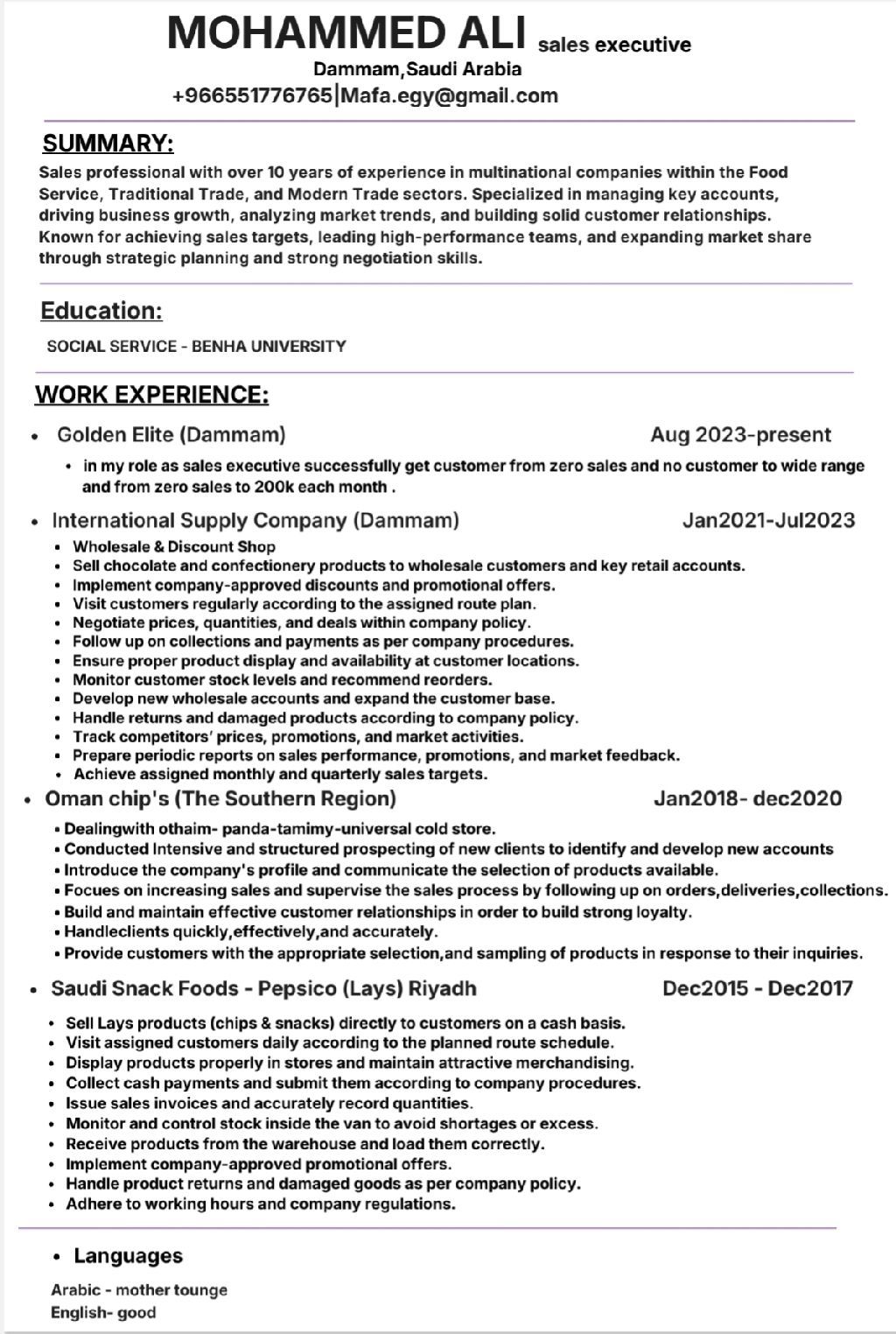 Seeking Work in Sales and Marketing in Saudi Arabia