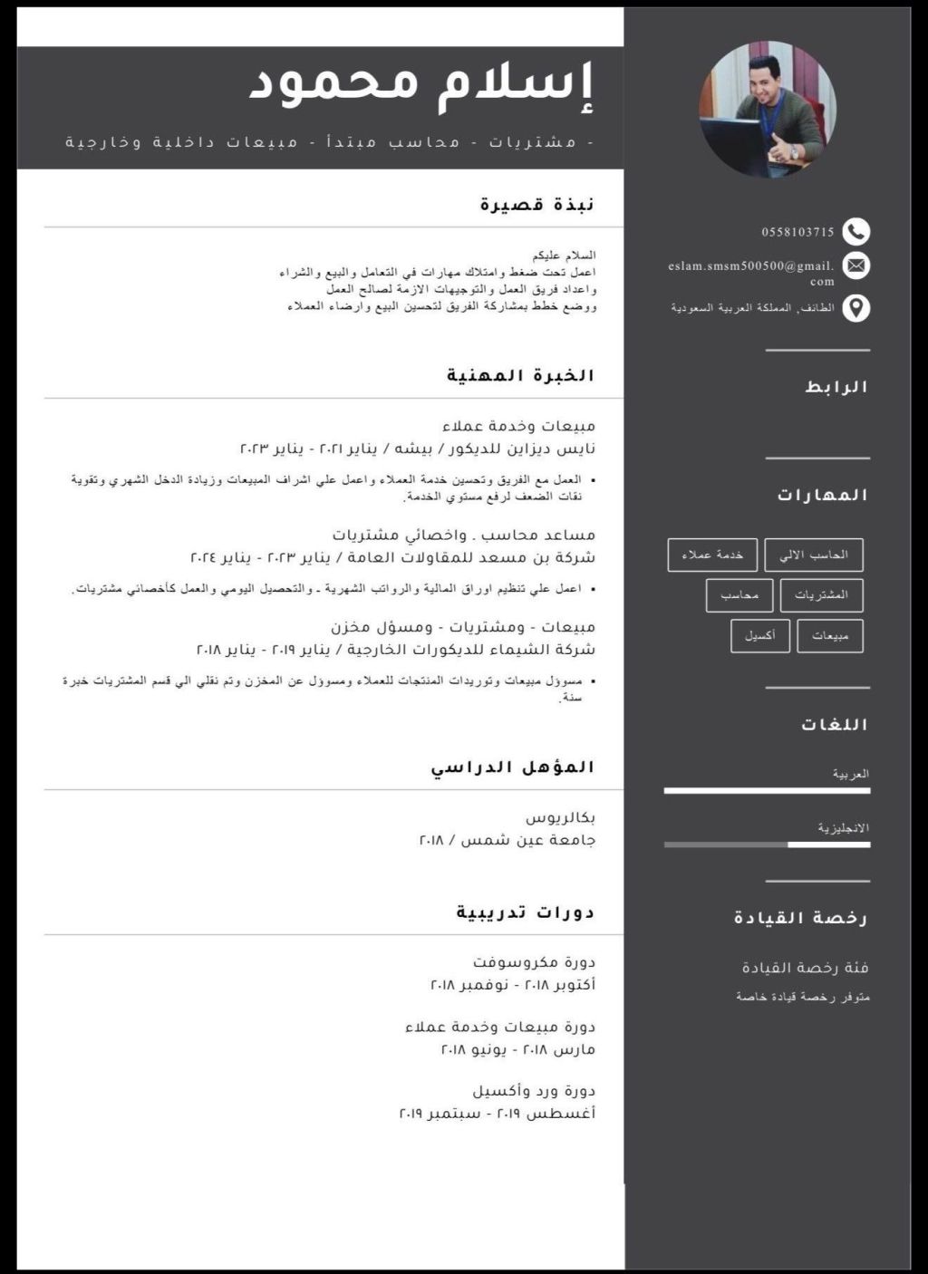 ابحث عن عمل. الخبرات مبيعات. مشتريات. مسؤول مخزن. محاسب مبتداء. كاشير في مطعم. خدمة عملاء. كول سنتر. اعمل في السعودية 4 سنوات ولدي اقامة سارية عام كامل ورخصة سيارة وحاليا أنا في مصر اجازي وأريد أن ارجع علي شركة أو مؤسسة وهذا ارقم الواتساب شغال