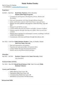 Real estate Marketer working remotely in the Saudi market, with experience in managing and marketing properties and dealing with clients, property owners, and brokers. I also possess strong negotiation skills and the ability to finalize contracts. I am قادر on managing real estate platforms and social media accounts, with experience in market analysis and understanding customer needs to achieve th