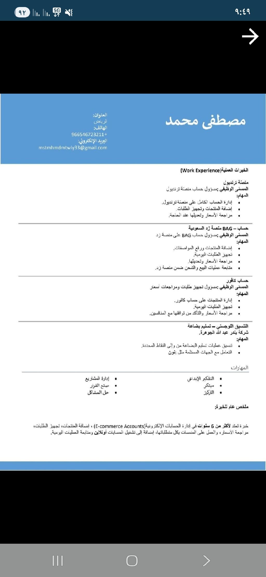 Seeking Work in Sales and Marketing in Saudi Arabia