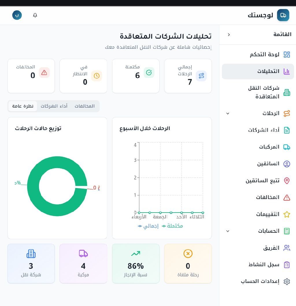 نظام نقليات ذكي مع تطبيق للسائق الوصف هل لديك أسطول مركبات وسائقين هل تريد متابعة الرحلات لحظة بلحظة نظامنا يوفر لك لوحة تحكم متقدمة إدارة المركبات والسائقين التعاقد حسب عدد الرحلات تطبيق للسائق لاستلام وتنفيذ الرحلات تقارير شفافة ومحاسبة دقيقة شاهد النظام الآن ضع رابط المنصة هنا