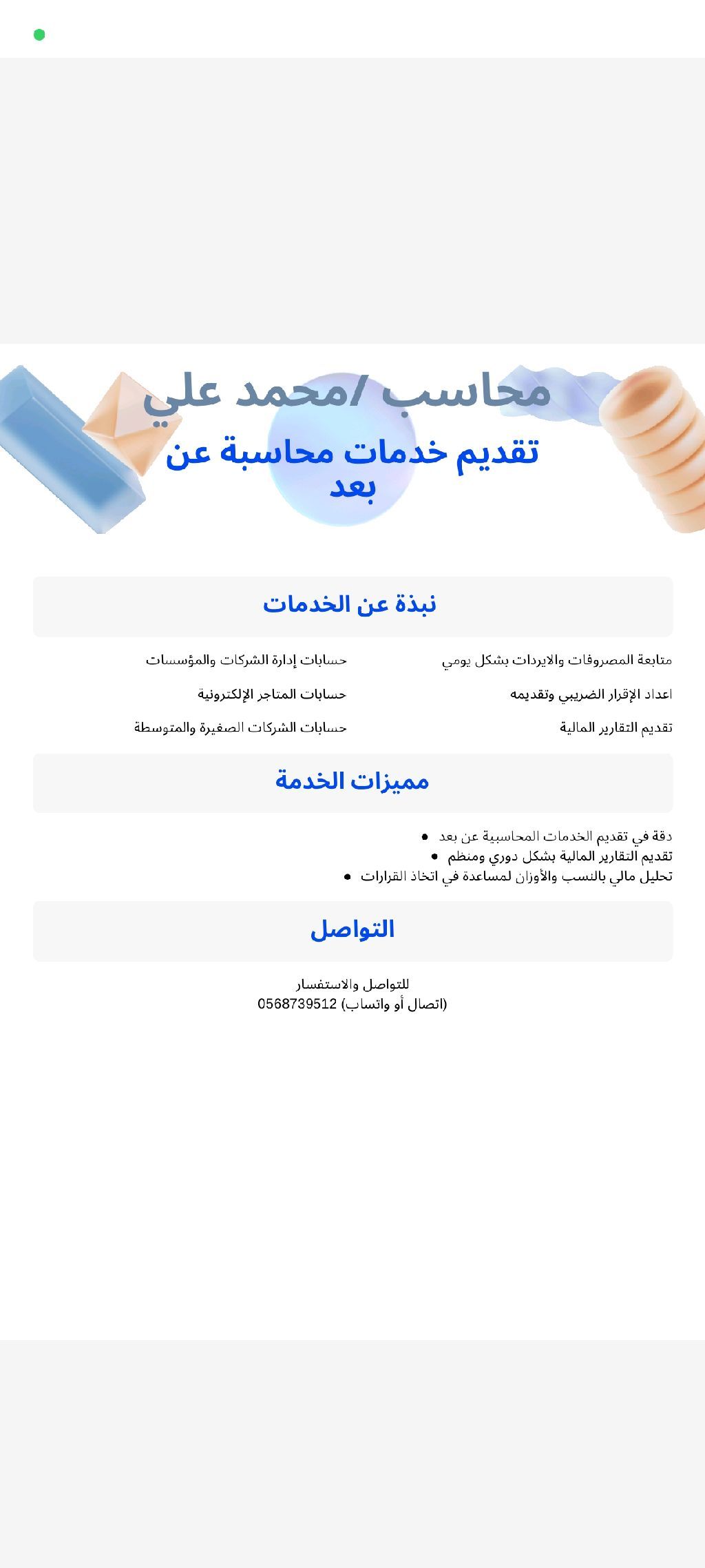 محاسب أون لاين يبحث عن عمل خبرة في إدارة الحسابات للشركات والمطاعم والمتاجر الالكترونية اعداد القيود اليومية - الميزانيات - التقارير المالية متابعة المبيعات والمصروفات بدقة خبرة في التعامل مع برامج المحاسبة والتطبيقات الالكترونية خبرة في اعداد الاقرار الضريبي وتقديمه تقديم خدمات محاسبية عن بعد بدقة تحليل مالي بالنسب والأوزان للتواصل عبر