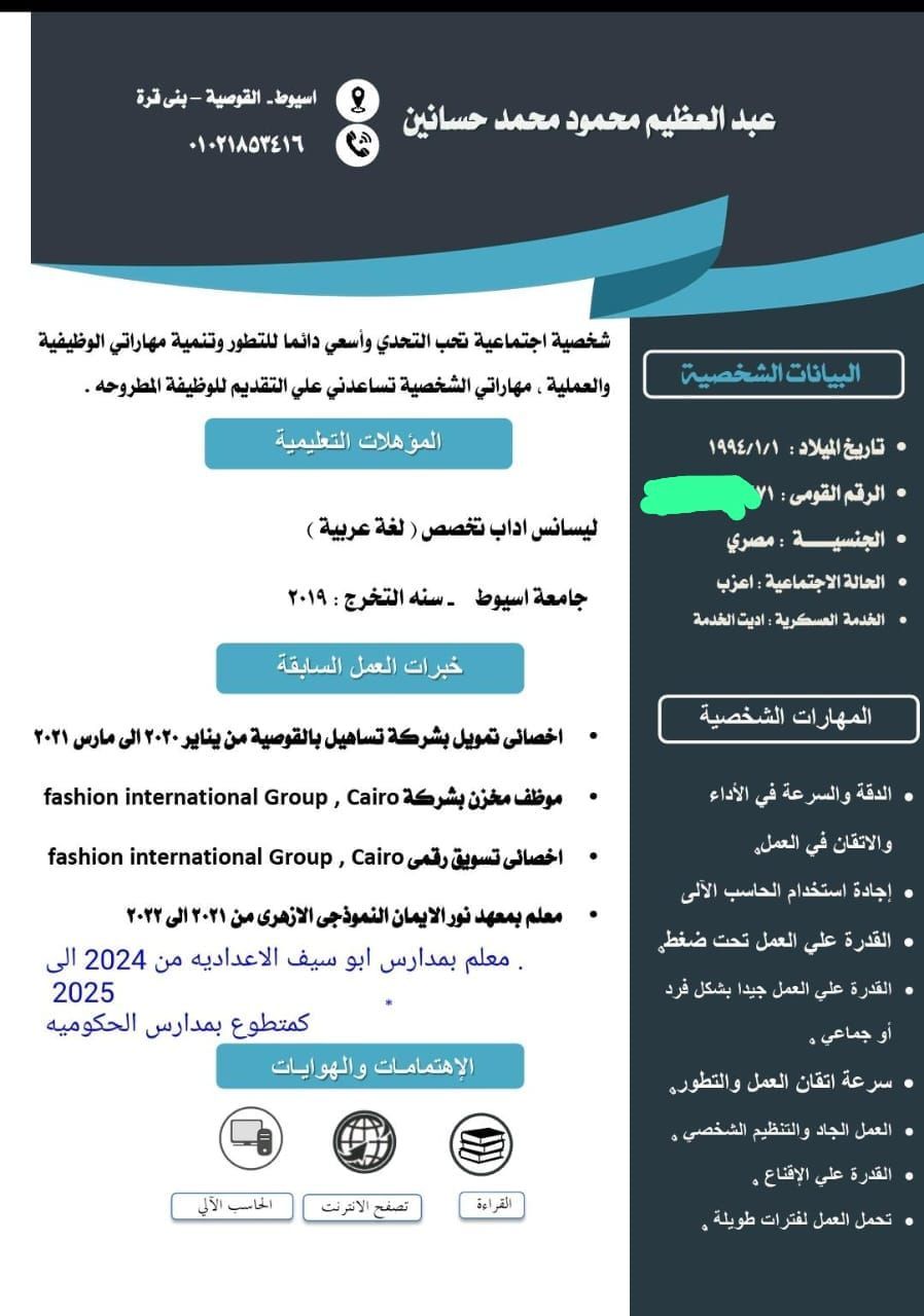 أنا ابحث عن عمل في مجال التعليم الاعدادي والابتدائي
