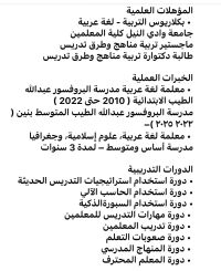 معلمه لغة عربية حاصلة علي الماجستير وفي القريب دكتوراه