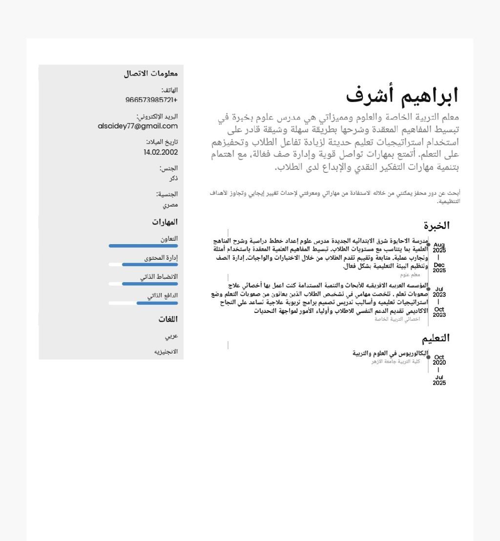 أنا إبراهيم أشرف مدرس علوم ابتدائي ومتوسط وأخصائي صعوبات التعلم للتعامل مع الاطفال الضعاف في المدرسة ومراكز التأهيل
